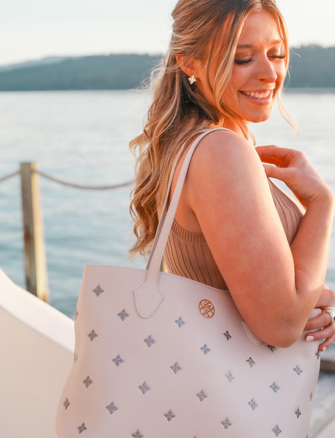 IMMEDIATE SHIP IMMEDIATE SHIP SCAN TO VIEW PIECES ONLINE NOW SALES@NATALIEWOODDESIGNS.COM 47 METALLIC SLATE HAN-CAR-MET Staying organized has never been prettier. GRACE MINI CARRYALL W: $36 / R: $72 Min: 2 CREAM /METALLIC SLATE HAN-TOT-CRE-MET GRACE TOTE W: $58 / R: $120 16”W x 10 1/2”H x 5”D Min: 2 per style Handbags VEGAN LEATHER NATALIEWOODDESIGNS.COM 46