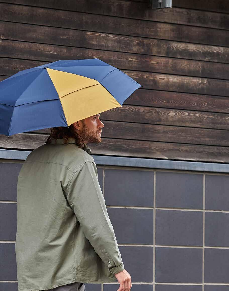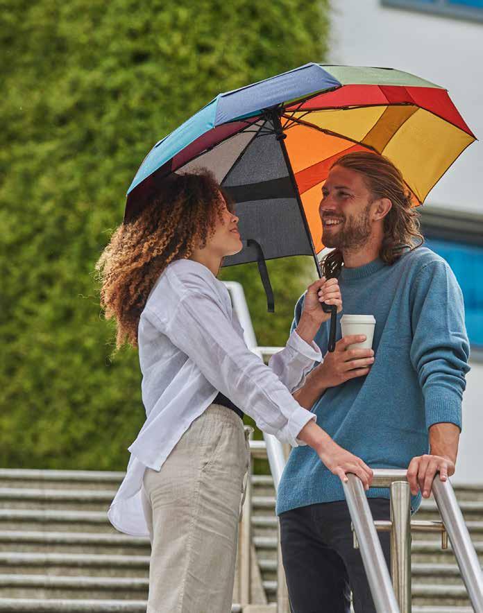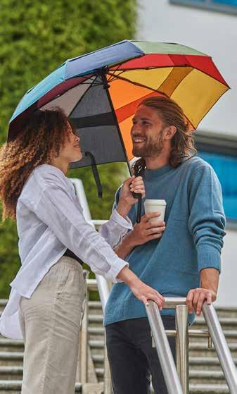 Our extra strong recycled material canopy is designed with a frame that withstands the toughest rain and wind, or shields you from the sun. The rubberized handle provides extra grip so that the Waterloo never slips away.