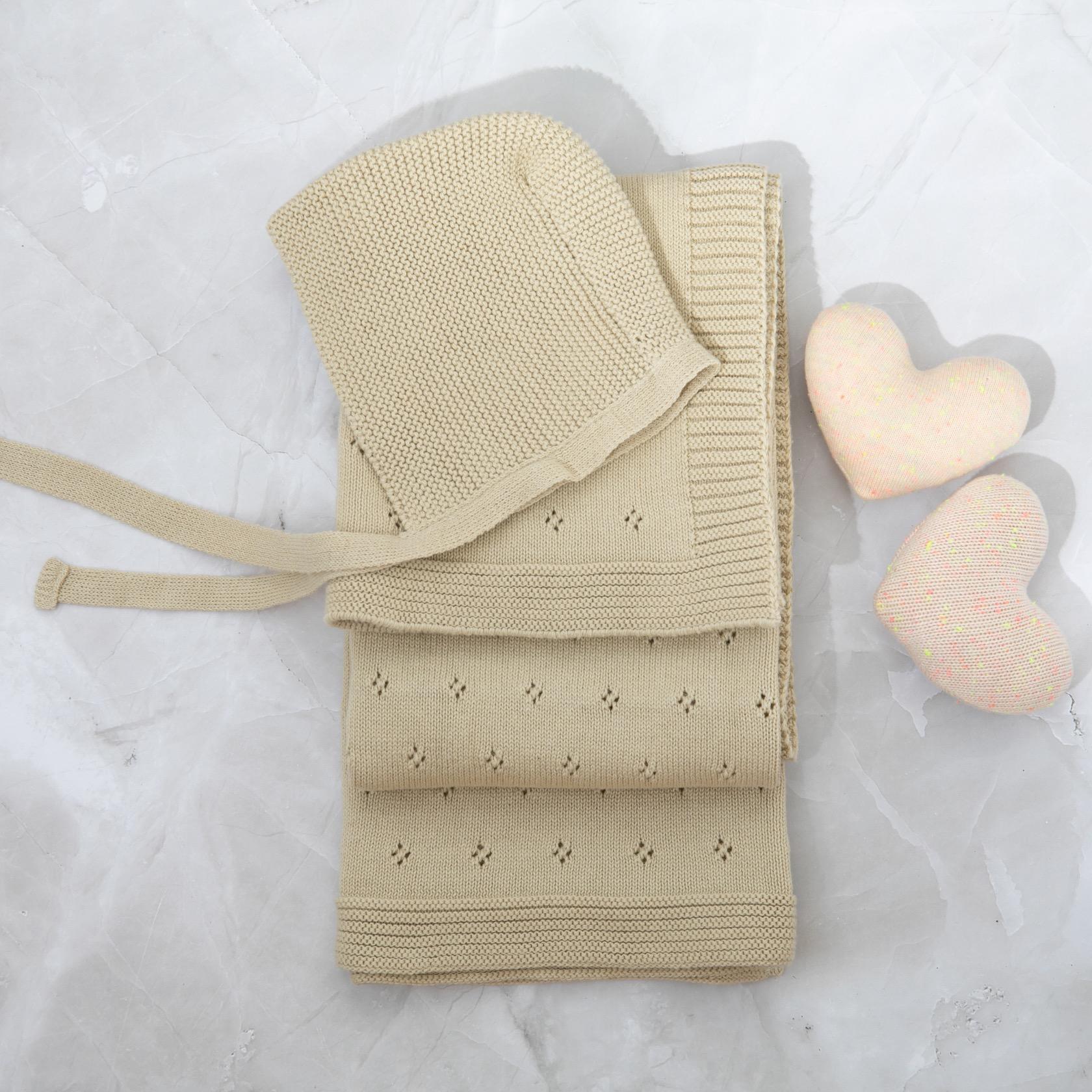 Infant Gift Set Trefle - Cuban Sand SKU : PLFBIS06 Baby Blanket (32 X 36inches) And Matching Bonnet Wholesale Price: $42 Retail : $100 MOQ : 3