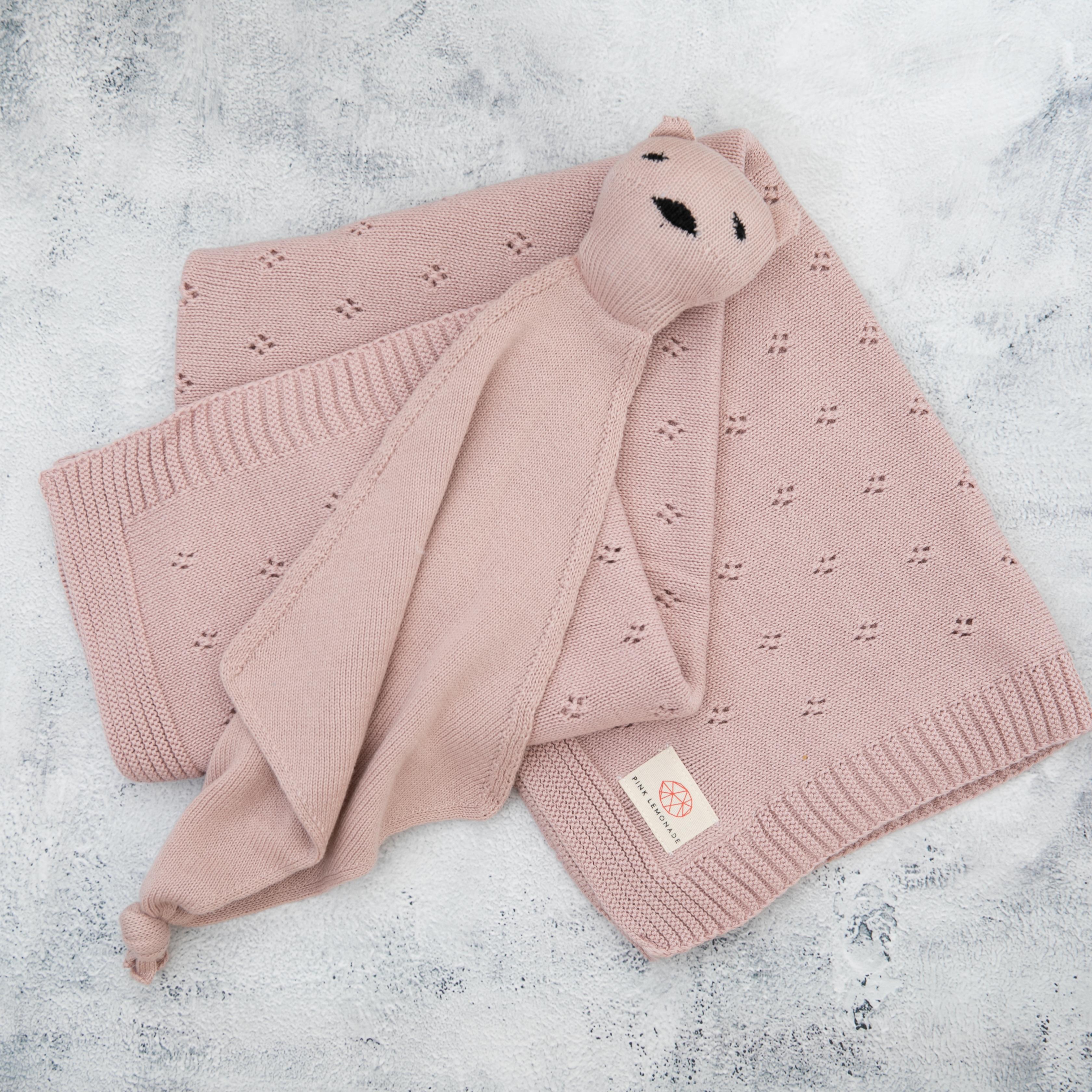 Infant Gift Set Trefle – Cameo Pink SKU : PLFBIN09 SKU : PLFBTN09 Baby Blanket (32 X 36inches) And Matching same color teddy toy lovie Wholesale Price: $38 Retail : $90 MOQ : 3