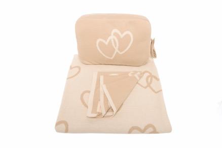 Sku : PLFBTRA01 Collection : Travel Blanket – Crazy Hearts - Capri Color : Beige/Grey/Clutter pink Wholesale Price: $48 Retail Price : $110 MOQ : 3