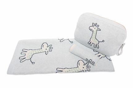 Baby gift Set = Baby Blanket(40 X 48 inches), diaper bag and Burp cloth Wholeslale Price : $48 Retail price : $110 MOQ : 3 Petite Giraffe – sky blue SKU : PLFBBDS31