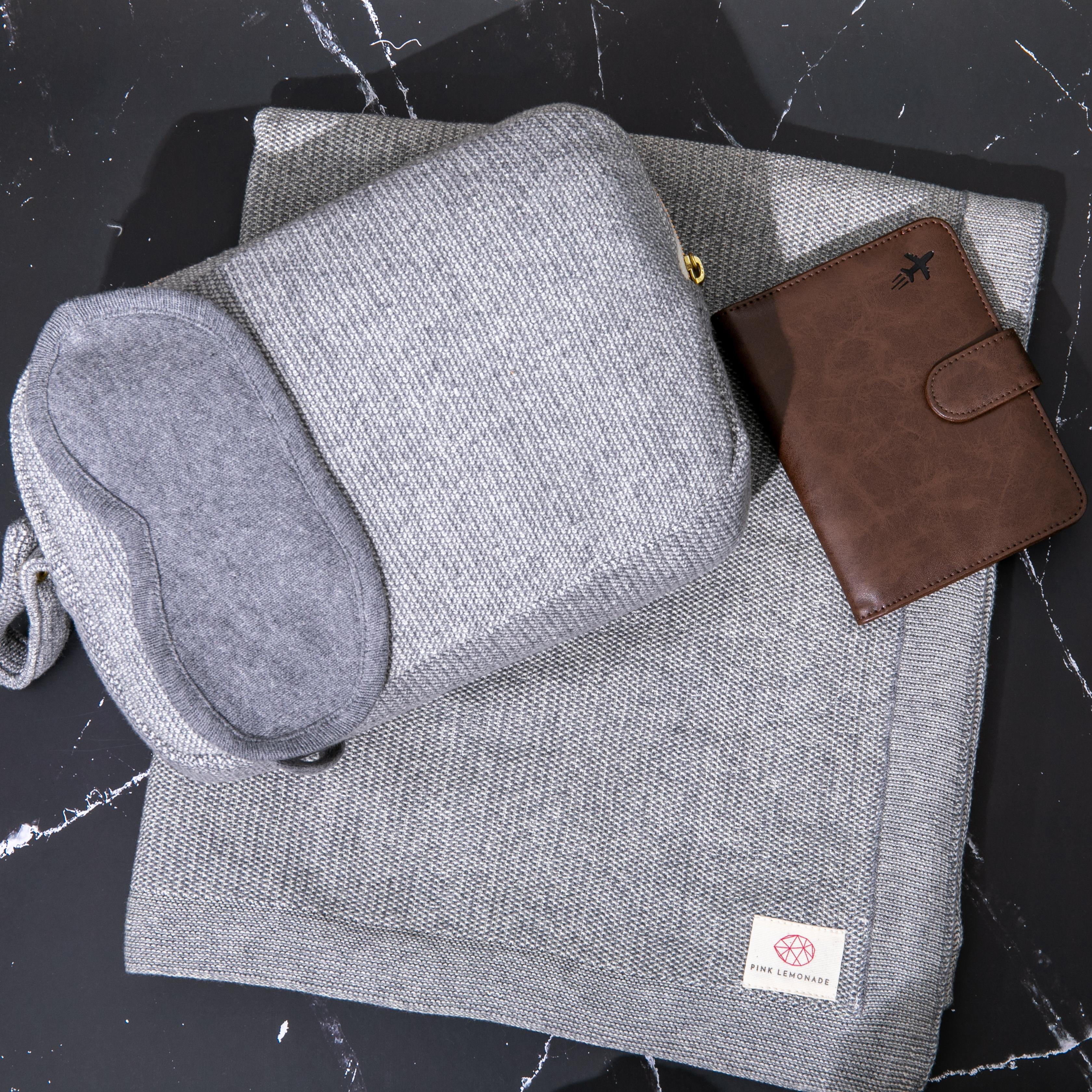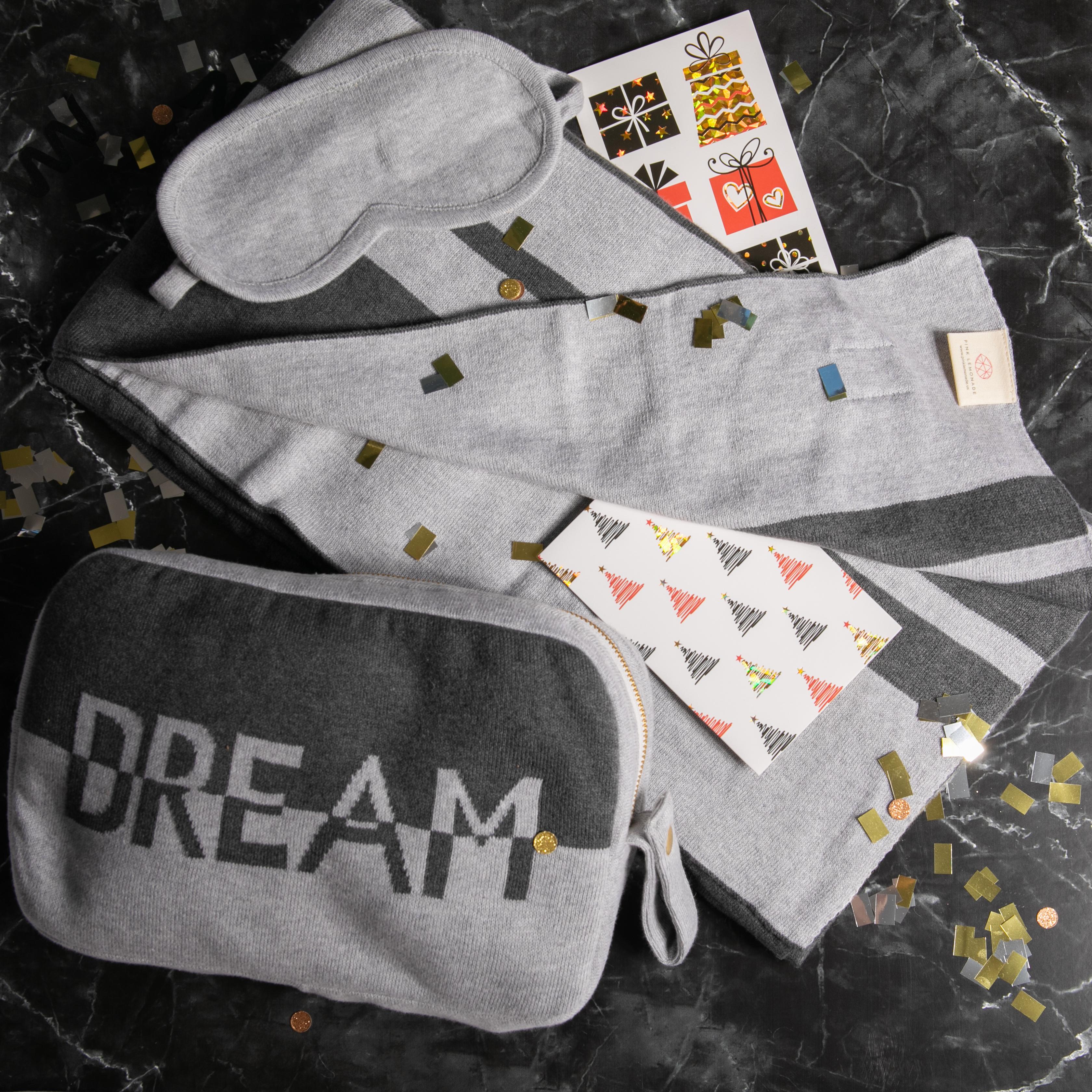Sku : PLFBTRA76 Collection : Travel Blanket - DREAM Color : Soft grey/Dk grey Wholesale Price: $48 Retail Price : $110 MOQ : 3