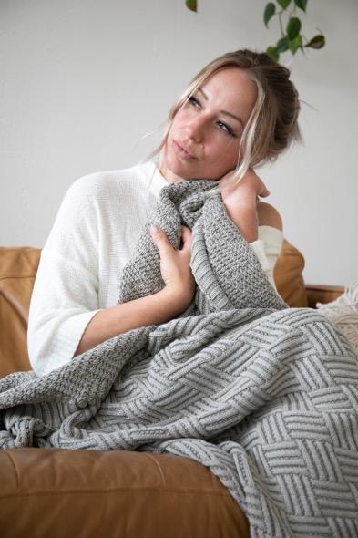 Sku : PLFBTRA34 Collection : Travel Blanket - Chain Size : 40 X 60 inches Color : Lt grey mel and vanilla Wholesale Price: $48 Retail Price : $110 MOQ : 3