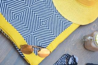 Sku : PLFBTRA67 Collection : Travel Blanket – Smiley cross eyed Color : navy/neon yellow Wholesale Price: $48 Retail Price : $110 MOQ : 3