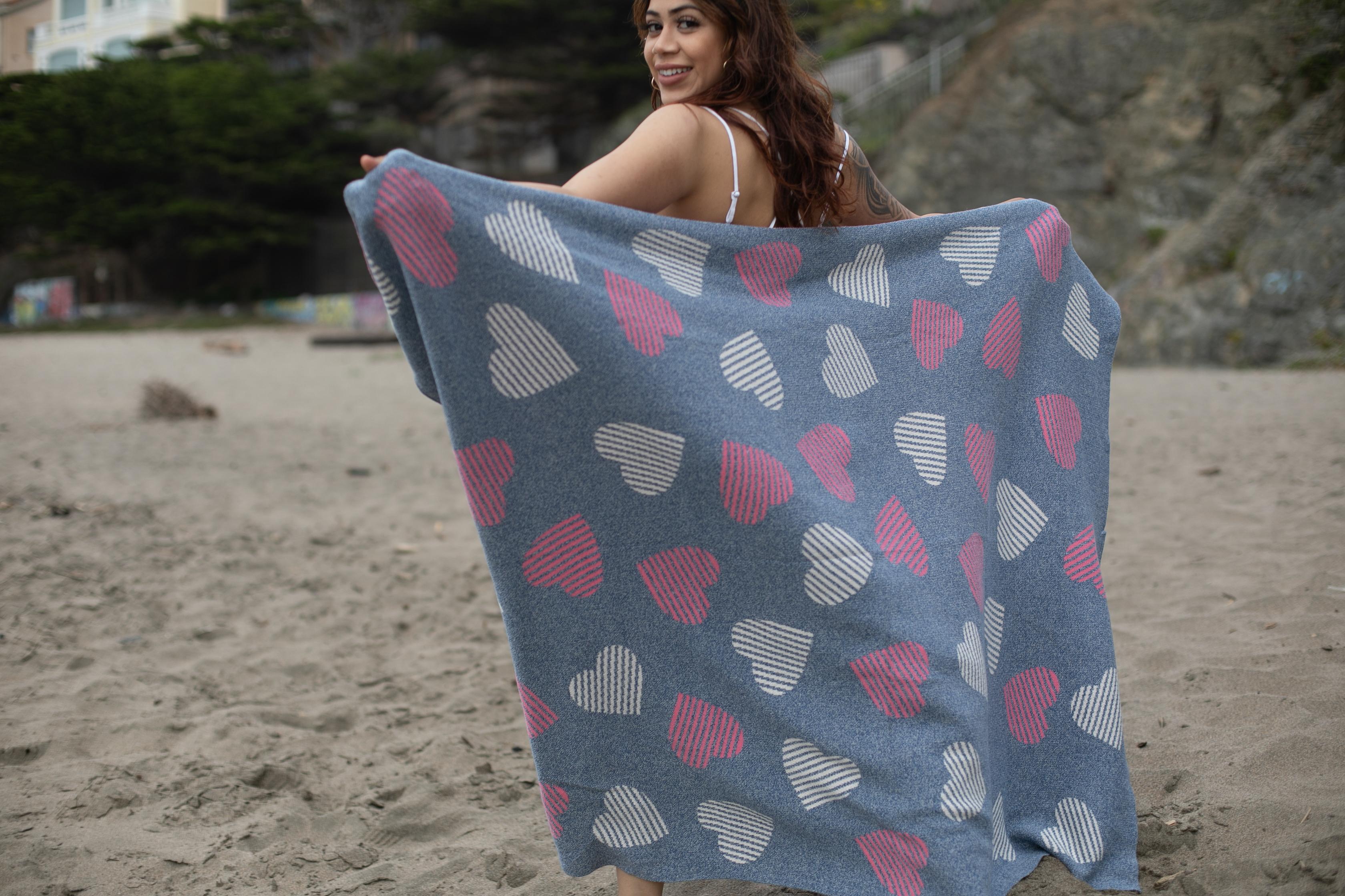 Sku : PLFBTRA32 Collection : Travel Blanket - Hearts Color : Marine and pink mel Wholesale Price: $48 Retail Price : $110 MOQ : 3