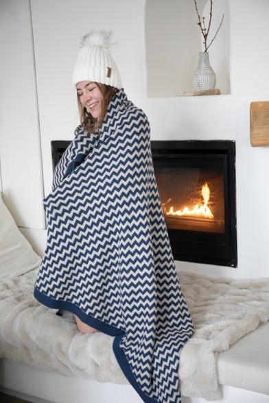 Sku : PLFBTRA02 Collection : Travel Blanket – Chevron stripes Color : Steel blue/pale whisper Wholesale Price: $48 Retail Price : $110 MOQ : 3