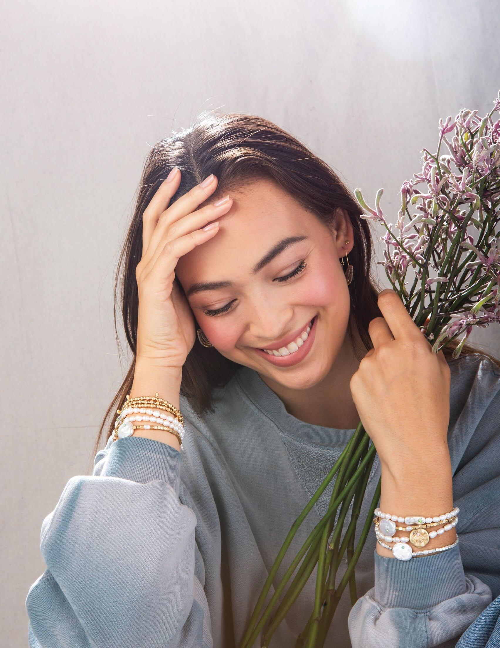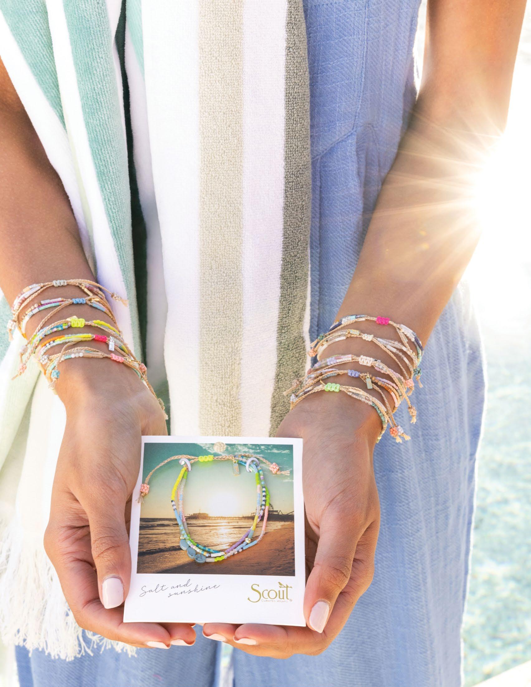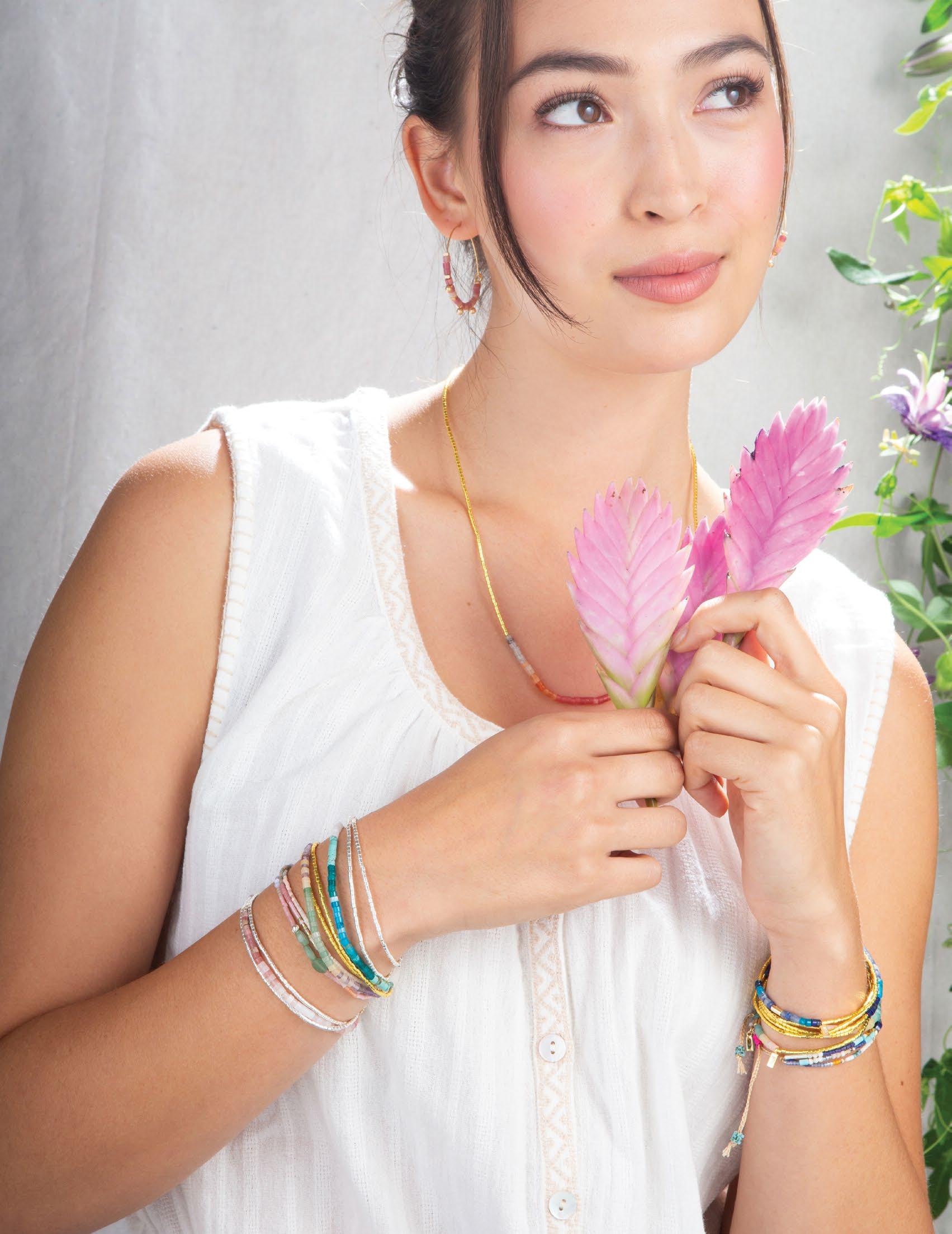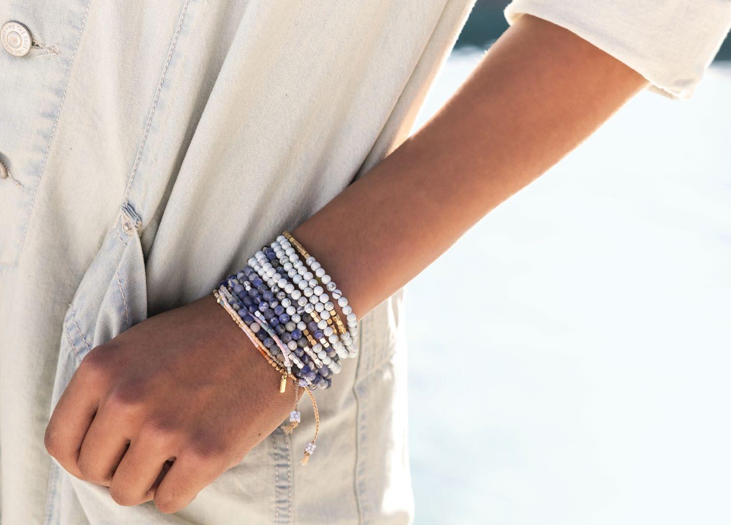 The first step onto the sand of a warm beach. Soaking in the magical light at golden hour. Our Mixed Media collection celebrates the joy and wonder we find in nostalgic memories. Each playful stacking bracelet incorporates semi-precious stones along with Japanese glass Miyuki beads.