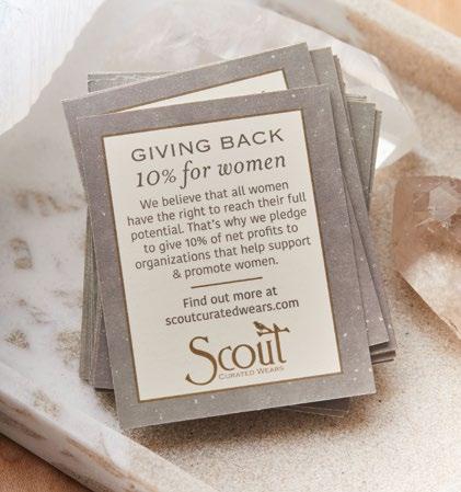 Our Scout give back card can be merchandised with product on sales floor or given at register with purchase. 2 x 2.5”