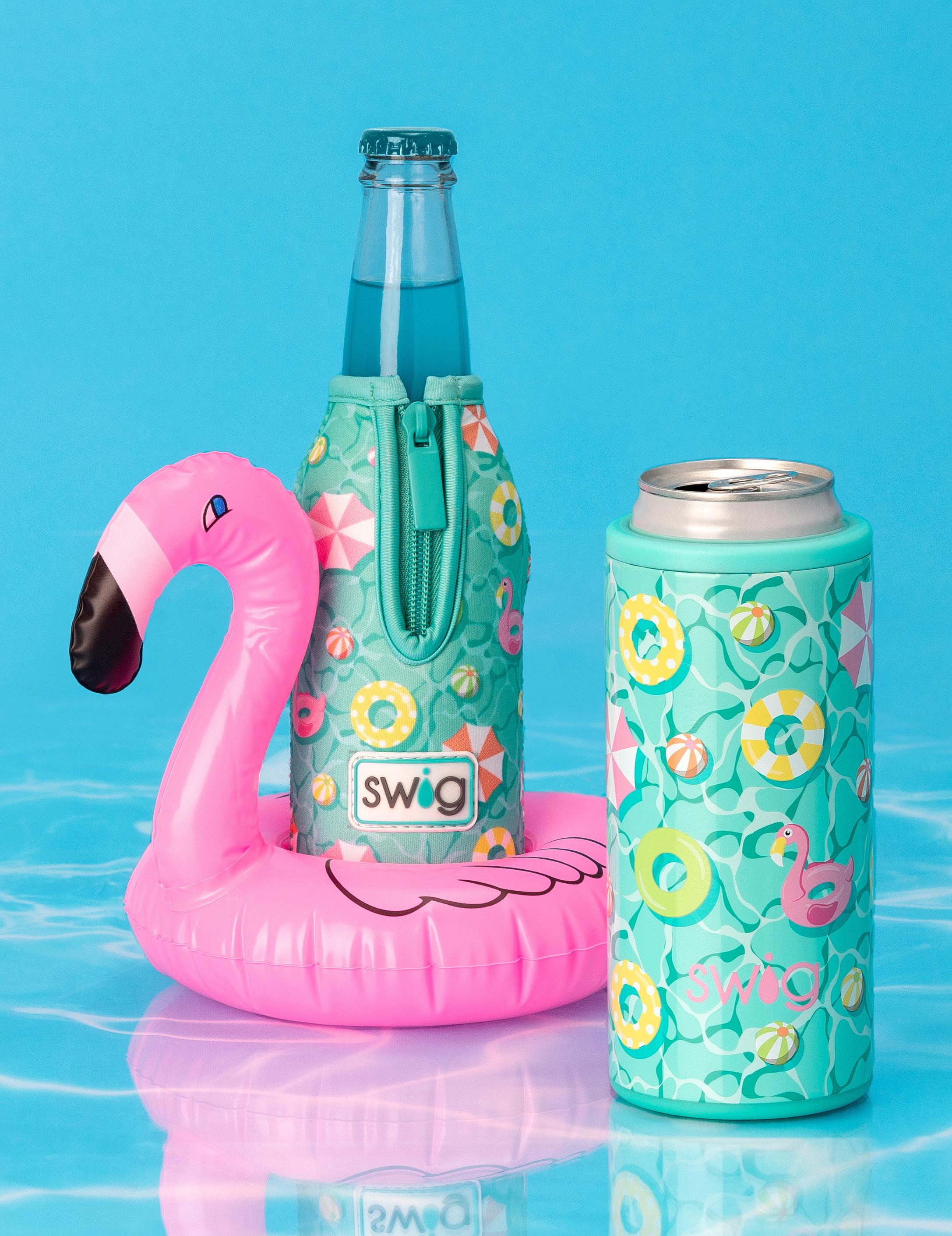 Fits standard 12oz slim beverage cans and some glass beverage bottles.