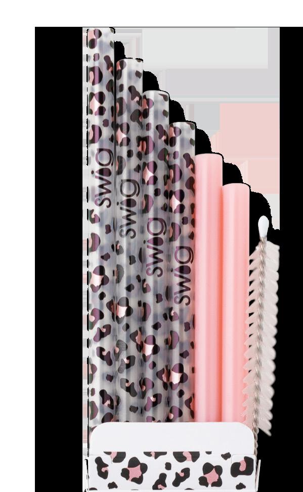 Luxy Leopard Reusable Straw Set + Cleaning Brush $4.00 EA Min of 6 - $24.00