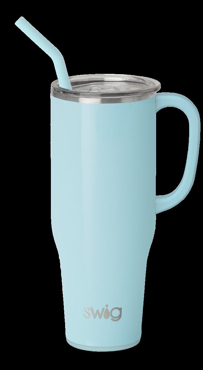 Stay hydrated with less refills! This extra large travel mug holds a whopping 40oz!