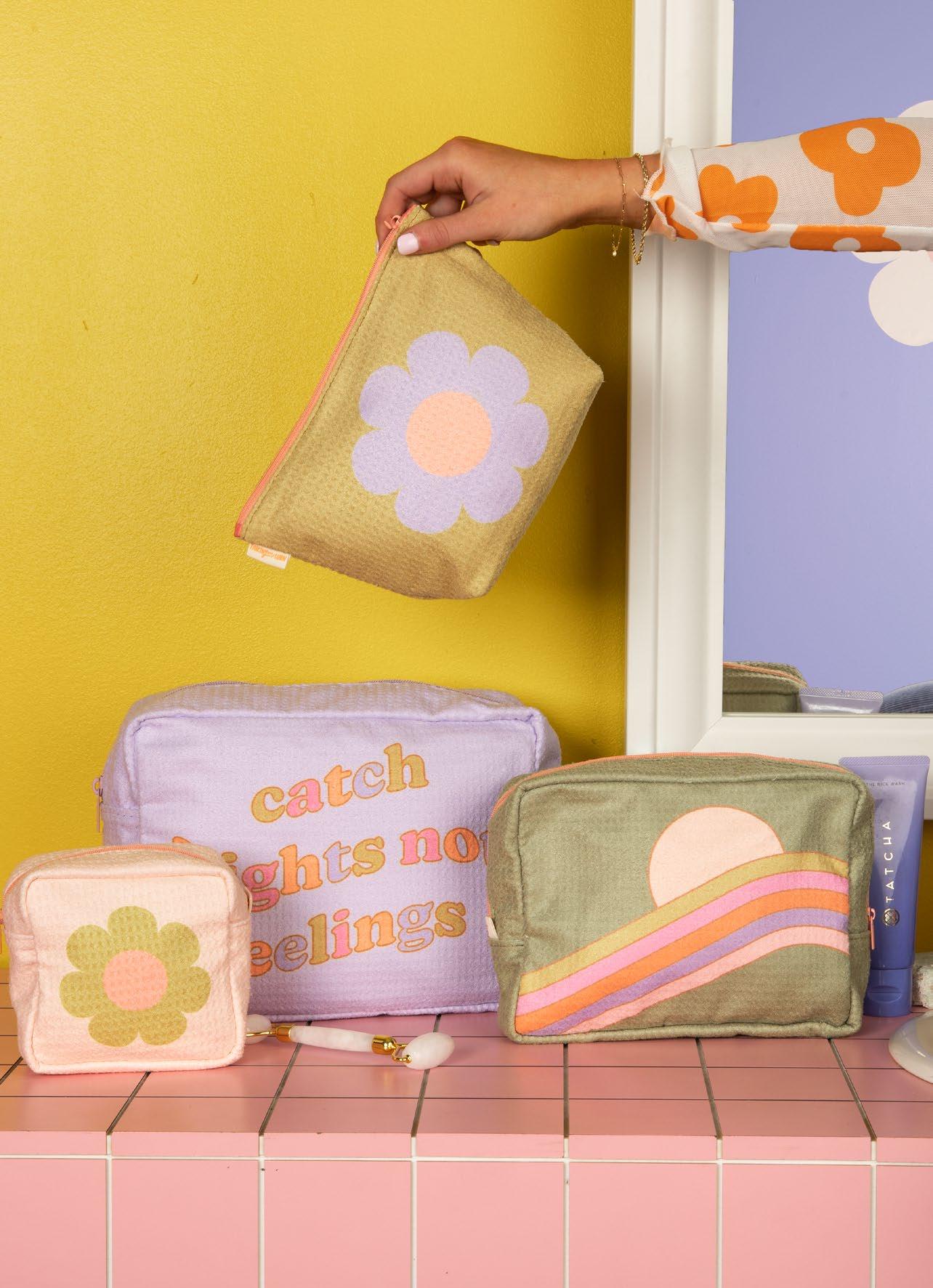 MOD POUCH Daisy W $11.50 | R $23 | Min 4 6257-3061 LARGE BUSY BEE Catch Flights Not Feelings W $19 | R $38 | Min 4 6259-3032 BUSY BEE Rising Sun W $16 | R $32 | Min 4 6244-2590 TWEEDLE DEE Daisy W $11.50 | R $23 | Min 4 6242-3031