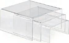 Tiered risers bring height and surface space offering efficiency and organization. Floor and tabletop designs are so beautiful that they work well in stores and as fixtures for catering events, homes and pop-up stores.
