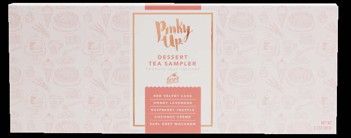 TEA & SUGAR TEA BY PACKAGING Sachets........................05 Sampler Box ..07 Tins .08 Pouches 14 TEA BY TYPE Black ............................05 Green.........................05 White.........................05 Yerba Mate.................05 Herbal.........................05 Rooibos 07 Iced 11 Wellness 13 SUGAR 04 HAVE YOUR TEA, AND DRINK IT TOO™ Recipes & More 34 34 TEAWARE MUGS Animal .........................18 Novelty.....................19 Infuser .........................20 Travel..........................23 BREWING & SERVING Infuser Teapots 27 Tea Presses 27 Carafes 29 Kettles 30 INFUSERS & ACCESSORIES 16 05 06 15 16 27 33 NEW! MATCHA ICE CREAM TEA SACHETS | PAGE 5 NEW! EVERLEE™ MUG WITH INFUSER AND LID | PAGE 17 NEW! LOOSE LEAF TEA SAMPLER | PAGE 7 INSTAGRAM @PINKYUPTEA 3