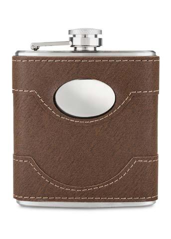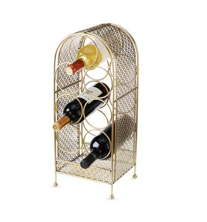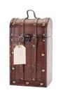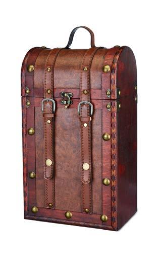 Holds 2 standard bottles • Crafted from wood Brass & faux leather accents • PKG: Tag