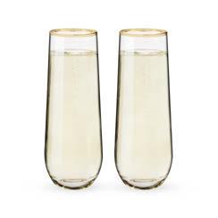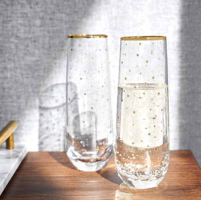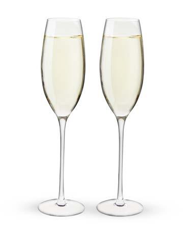 Includes 2 stemless Champagne flutes with electroplated gold rim & sparkle pattern • Engraved “Congratulations” inside lid Includes packing straw • PKG: Belly Band