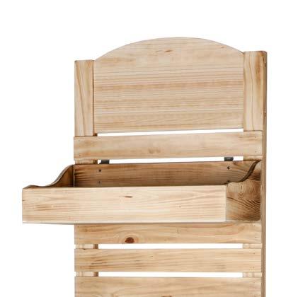 4390 | Case of 1 | $199.99 Per Unit Wood DisplAY RAck Crafted from pine wood • Includes 3 removable shelves & 9 hooks Perfect for holding bulk items, bags & boxes Assembly required • 5 ft tall BAckboARd is ReveRsible turn it around for a blank nameplate!