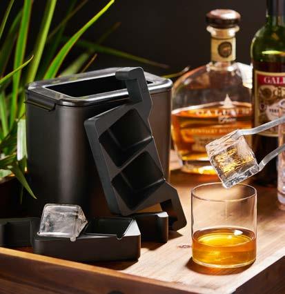 MATERIAL Lead-free crystal, silicone, wood INCLUDES 4 tumblers, 4 ice sphere molds CAPACITY 9 oz PKG Wood box CUSTOMIZE 10918 | $27.49 Per Set | Case of 4 Liquor Glass and Ice Sphere BOX SET Diamond ICE TRAY MATERIAL Silicone FEATURES Diamond shaped mold, makes four large ice cubes PKG Hanging belly band 5868 | $7.99 Per Unit | Case of 8 Silicone ICE CUBE TRAY MATERIAL Silicone FEATURES Makes 6 cubes INCLUDES Lid PKG Hanging belly band A. Whiskey 2.5" cubes 9575 | $8.49 Per Unit | Case of 6 B. Highball 1.5" cubes 9576 | $8.49 Per Unit | Case of 6 A. B. B. BESTSELLER Glacier Rocks® ICE SPHERE MOLDS QTY Four molds or two molds & two 9 oz tumblers MATERIAL Silicone & lead-free crystal FEATURES 2" diameter spheres PKG Box CUSTOMIZE A. Ice Sphere Molds 4534 | $11.49 Per Set | Case of 6 B. Ice Sphere Mold & Tumbler Set 4510 | $21.99 Per Set | Case of 4 NEW NEW CHILLING ICE TRAYS & TOOLS INSTAGRAM @VISKICRAFT PHONE 1-800-750-8783 57