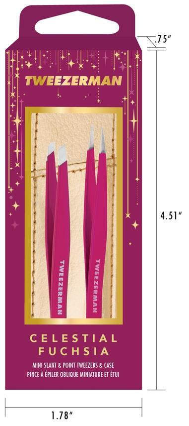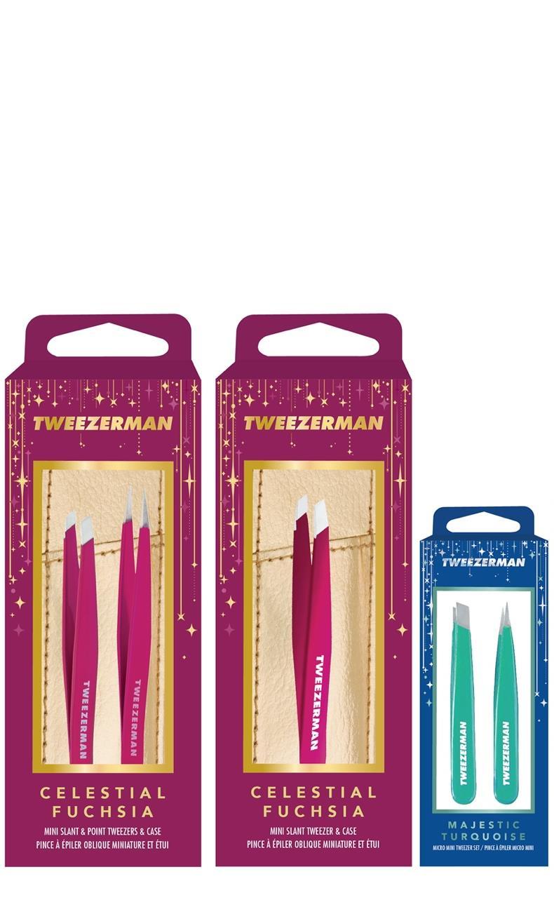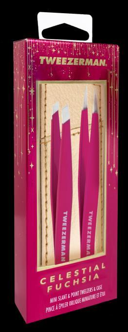 Limited edition Celestial Fuchsia Mini Tweezer Set includes our Mini Slant and Mini Point tweezers to precisely shape brows with precision. Storage case included. This set makes for the perfect stocking stuffer.