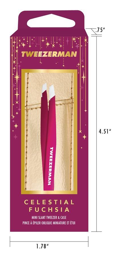 Limited edition Celestial Fuchsia Mini Slant Tweezer has perfectly aligned, hand-filed tips for expert brow shaping. Storage case included.