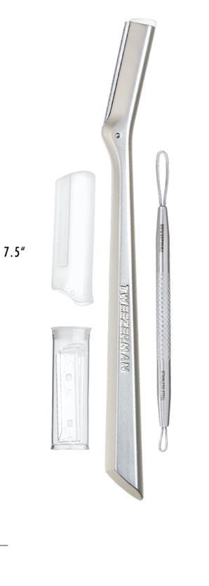 • Facial Razor, Skincare Tool, and 3 replacement blades included