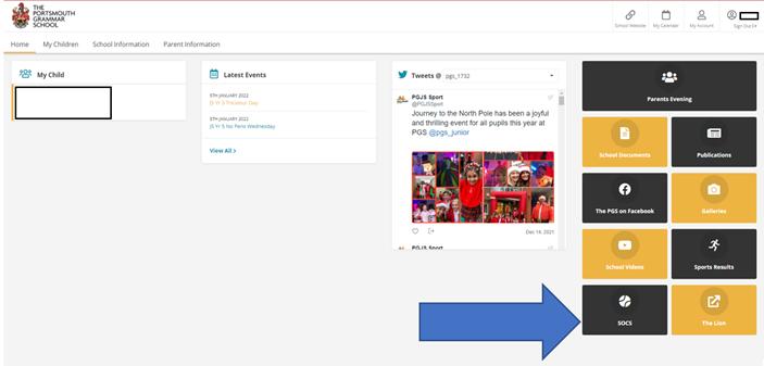 Once signed in to My School Portal, you can access SOCS by clicking the