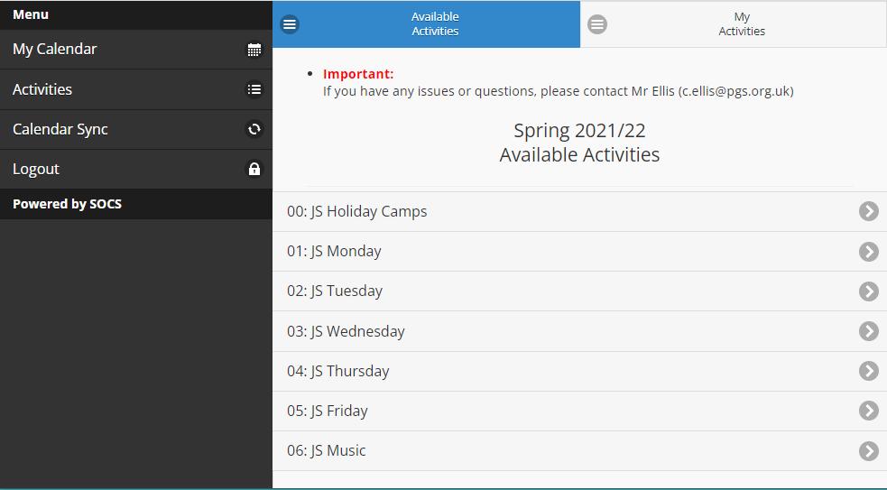 SOCS is an online system that we use to manage all co curricular activities and sporting fixtures in both the Junior and Senior School. It provides a one stop shop for you to see and manage your child's co curricular activities including clubs and fixtures.
