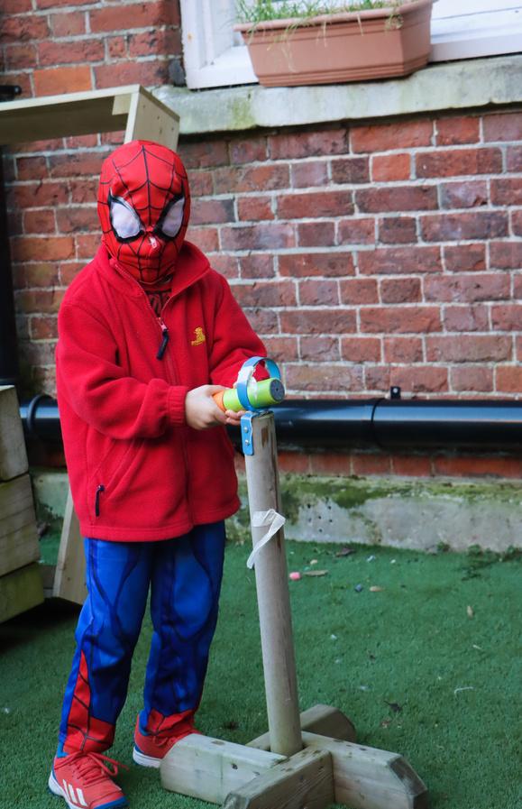 Reception and Pre-School spent the day undertaking some serious superhero training. Flapjack making for slow-release energy, racing to save teddy bears in the playground and learning to shoot water at a target were the tasks the Reception children took on.