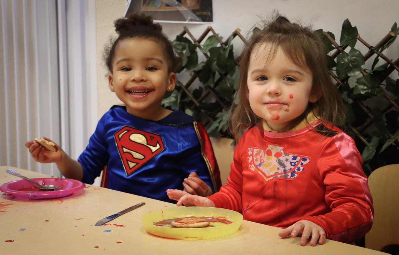 Meanwhile in the Pre-School they learnt about some of the key traits of a superhero from their group reading, like who would be their side-kick? Then they decorated some very colourful spiderweb/sparkle biscuits
