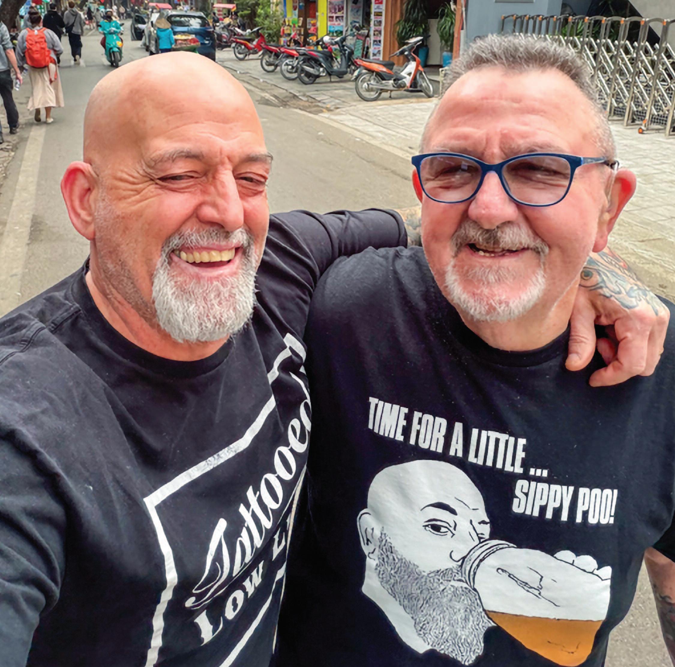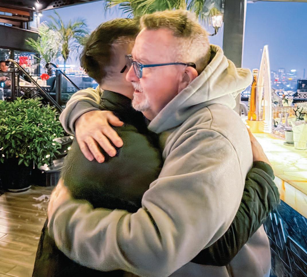 Woodcliff Lake’s Scott McDowell and Wappingers Falls, N.Y.’s Paulie Becker in Hanoi this month. Becker, a U.S. Army special forces veteran, returned from the war with PTSD. McDowell saw to it that his friend would get to return—both to Vietnam, which welcomed him warmly, and to a grateful Pascack Valley homecoming. Courtesy McDowell.