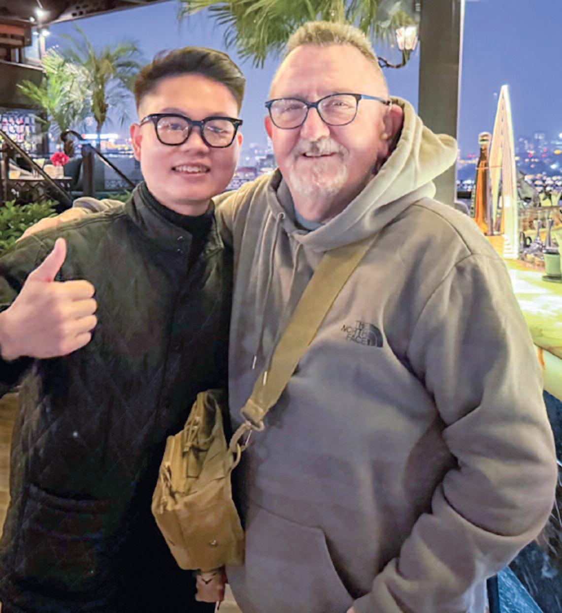 Paulie Becker finds a warm reception in Hanoi. Far right: Becker shows off his Jan. 12, 2026 welcome home letter from a representative of the U.,S. federal government. Scott McDowell photos.