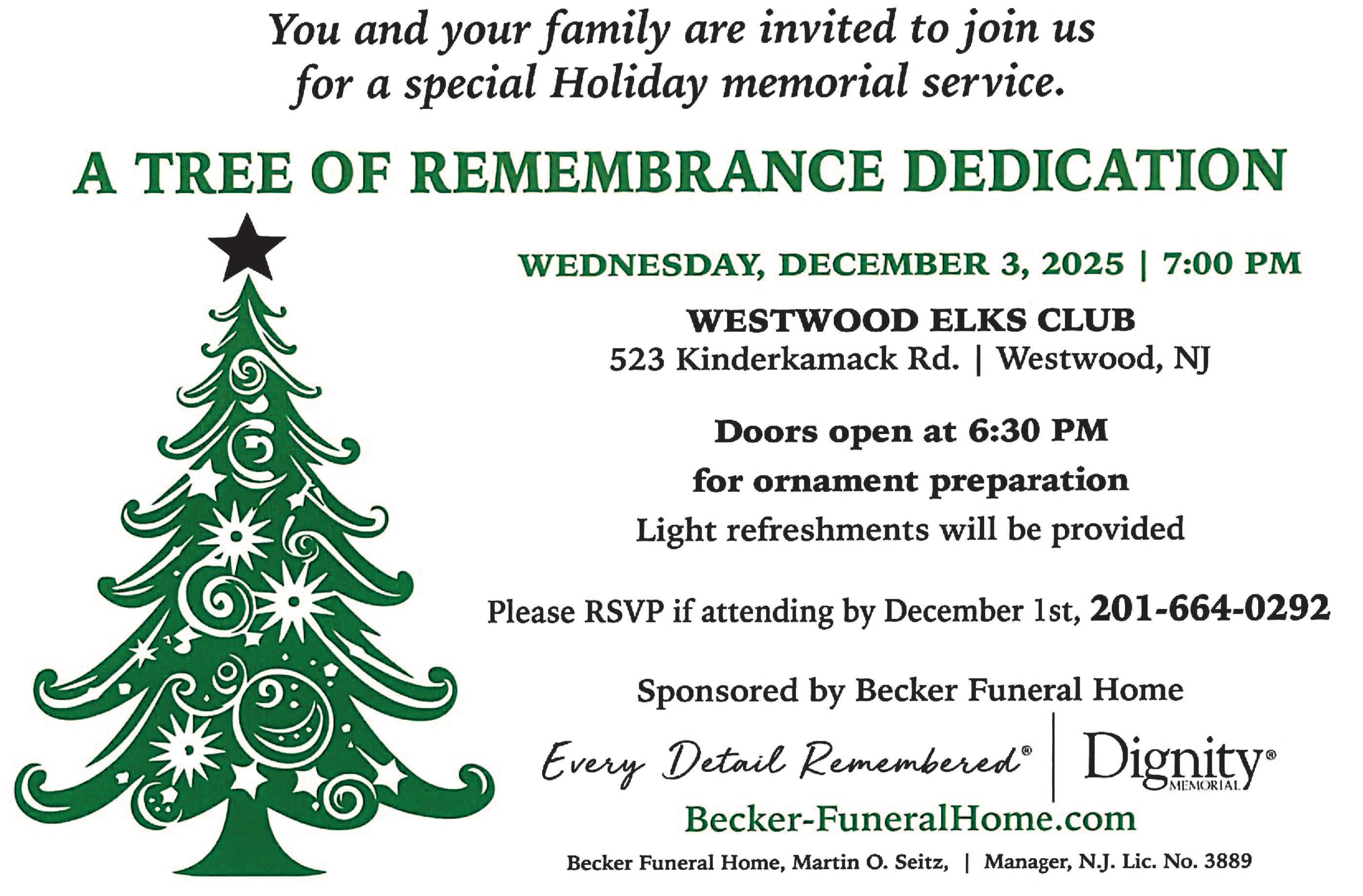 Family and friends were invited to gather at Becker Funeral Home, 219 Kinderkamack Road, Westwood, on Friday, Nov. 14. A Mass of Christian Burial was celebrated at Our Lady of Mercy Roman Catholic Church in Park Ridge on Saturday, Nov. 15, followed by interment at Maryrest Cemetery in Mahwah.