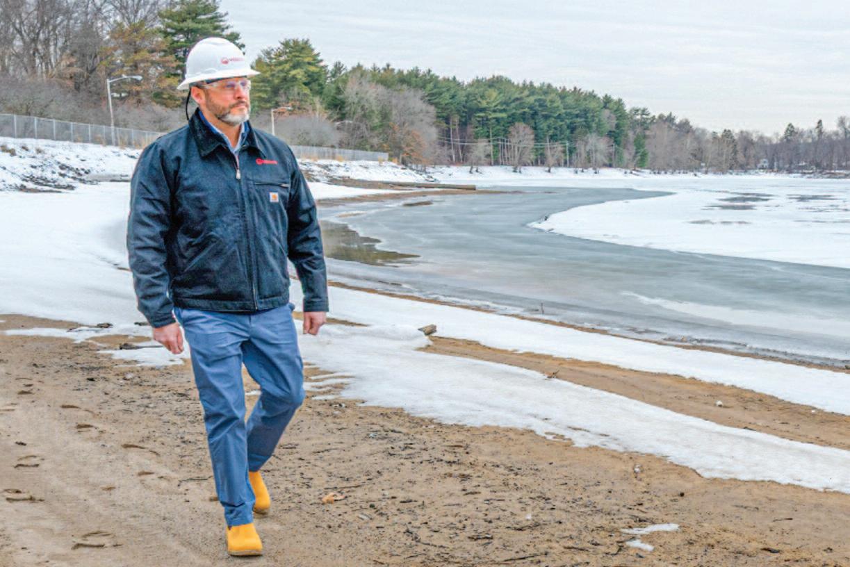 Josh Engelking,Veolia senior director of operations, walks along the banks of the Oradell Reservoir recently. The area is usually underwater. Veolia photo.