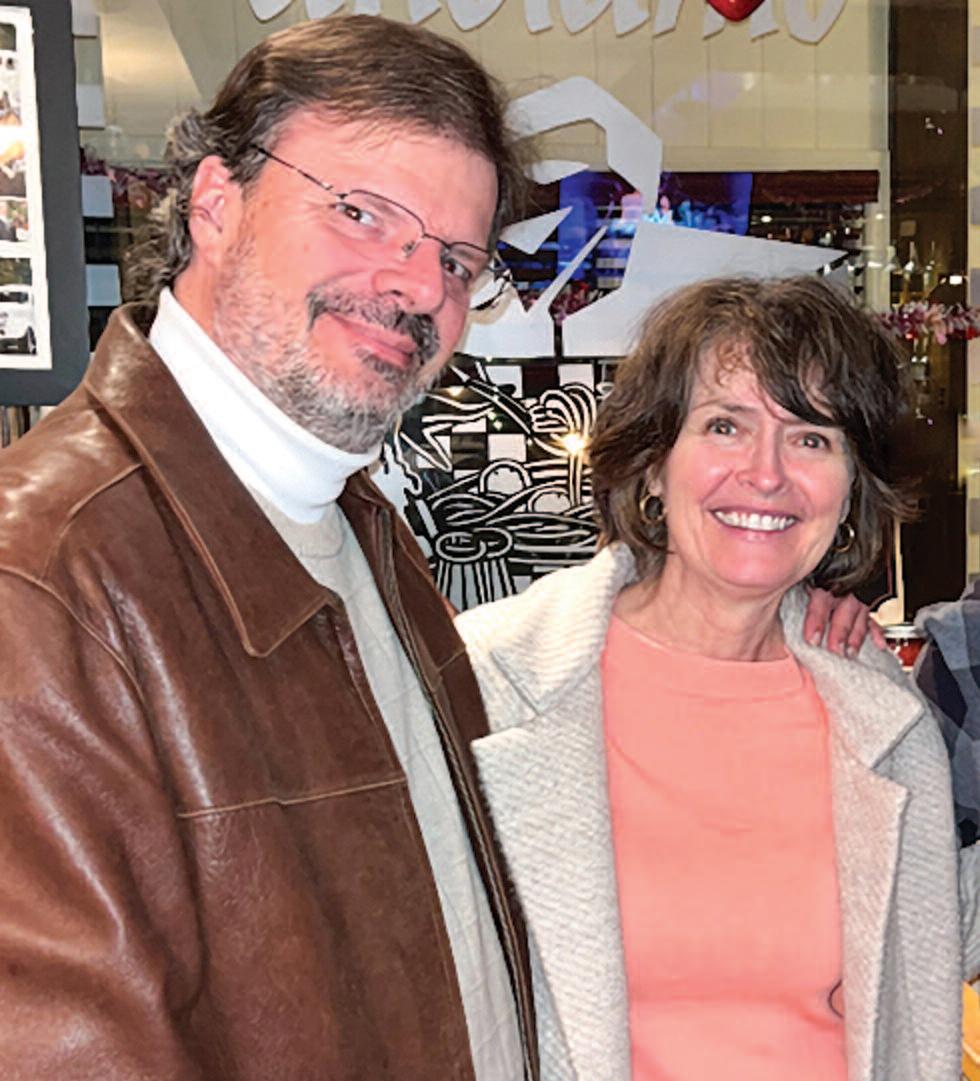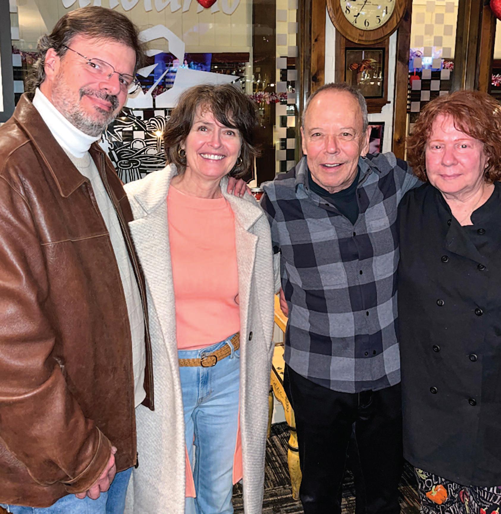 couple enjoys their 34th anniversary dinner with friends where they had first date.