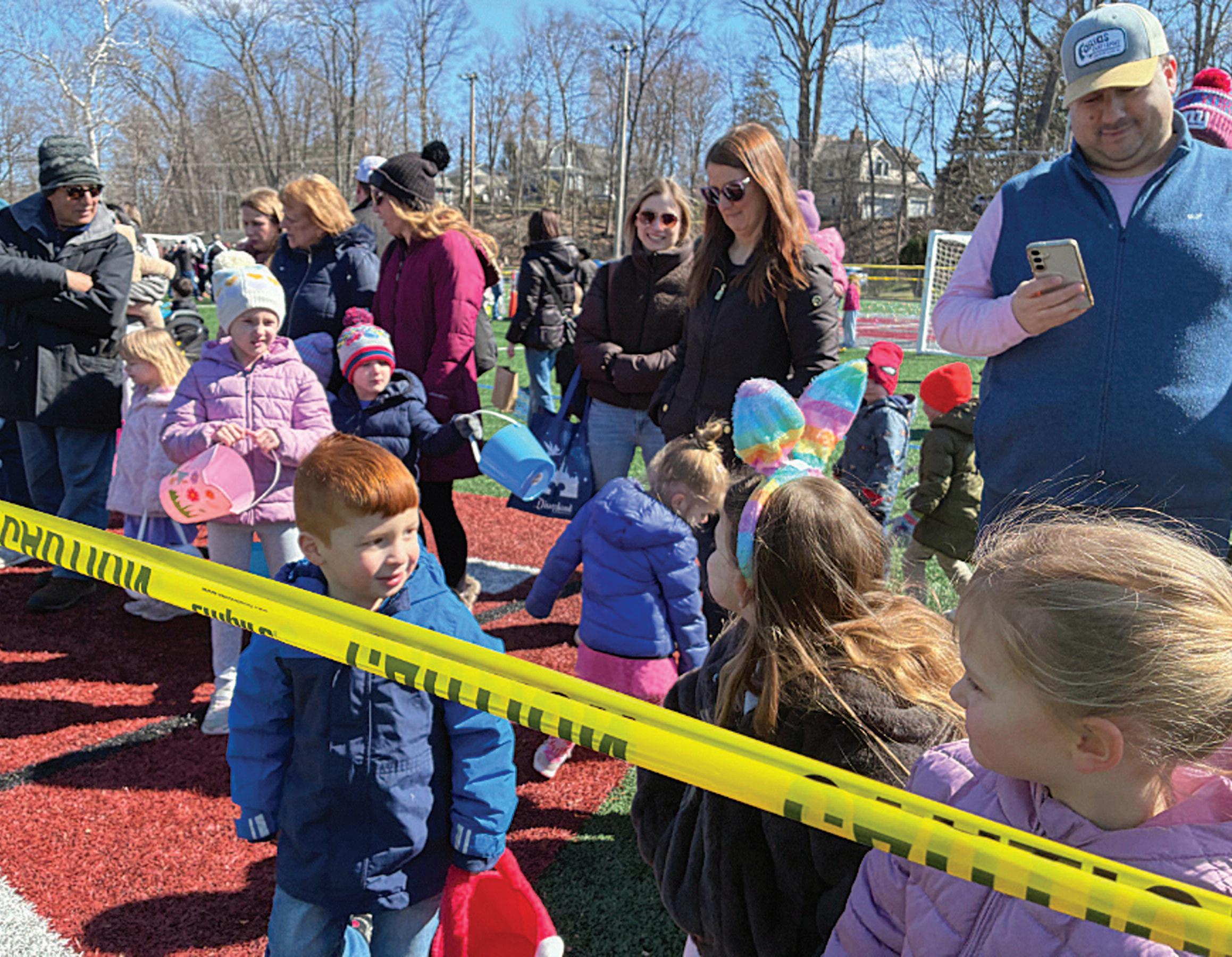 The boroughʼs Recreation and Cultural Committee hosted its annual Easter Egg Hunt on Saturday, March 28. Despite brisk weather, families turned out for the event, where children met the Easter Bunny and searched for treats. The committee thanked volunteers and sponsors, including TD Bank, PIM and ShopRite of Hillsdale, which provided grand prize baskets. The New Jersey Education Association hosted a jellybean counting contest, and borough departments, including the Police Reserve Unit, Department of Public Works and Water Department, assisted with the event.