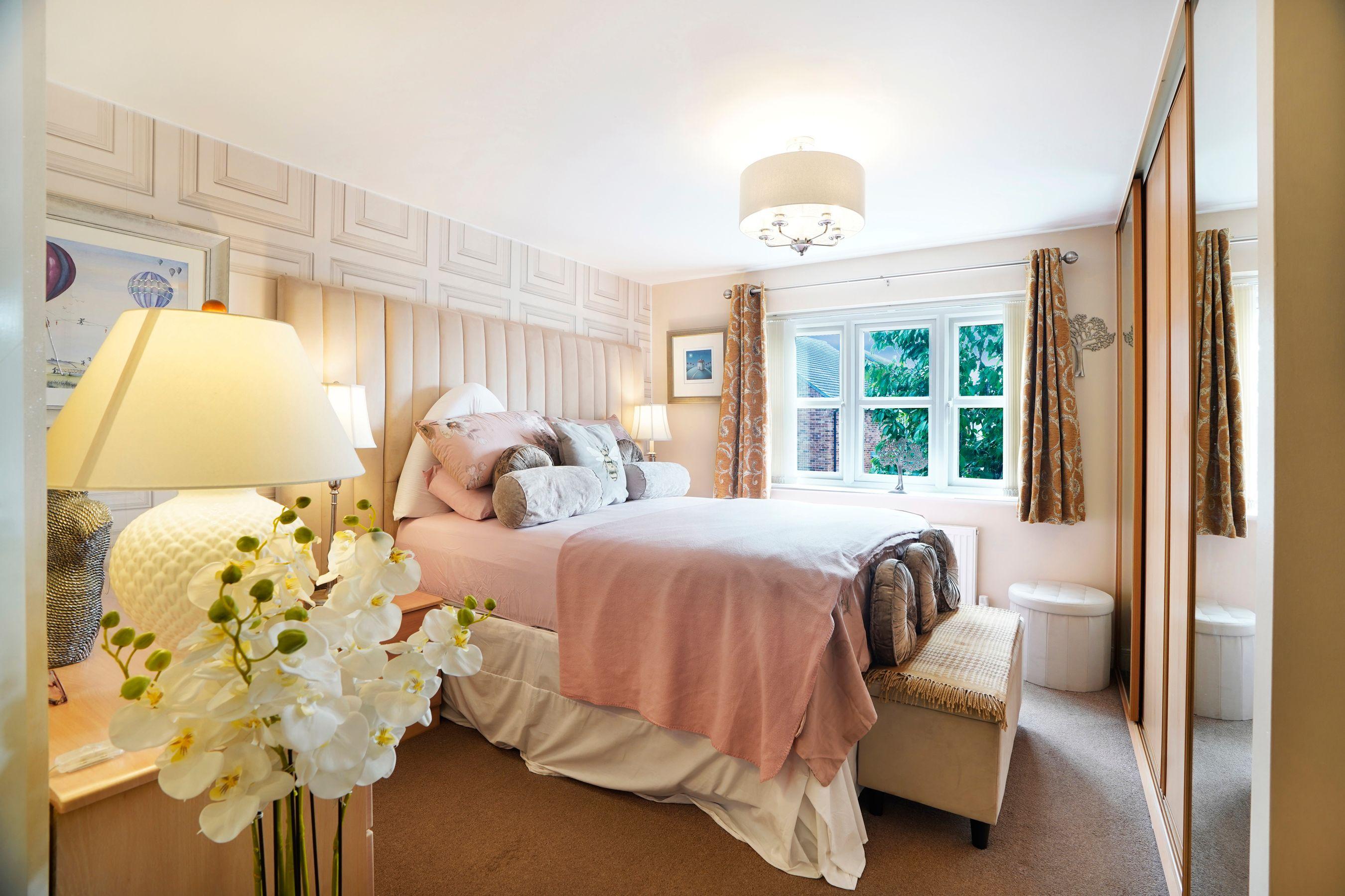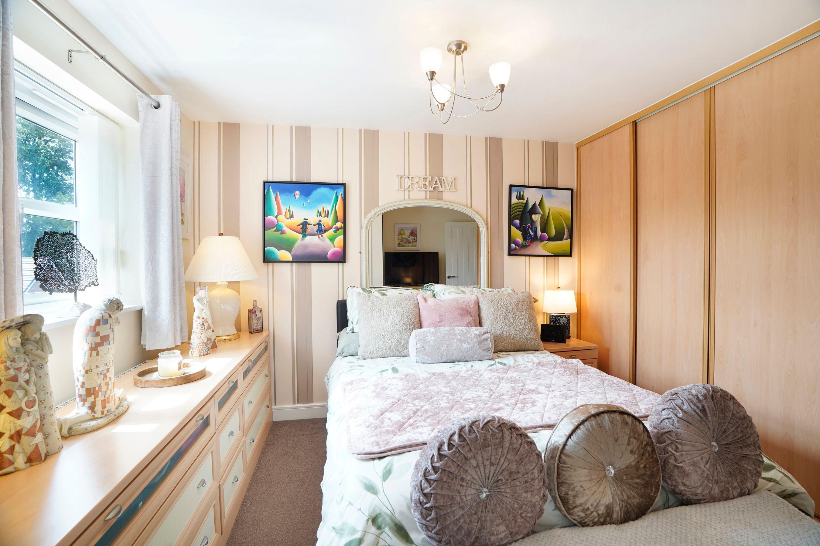 The master suite is truly a fabulous size and is able to accommodate even a Super-King Size double bed alongside bedside furniture! The master suite benefits from generous double glazed windows which provide attractive views of the front garden and a large built-in wardrobe with space to store all of your clothes. Connected to the master suite is the generous ensuite which is well-equipped to meet all of your dayto-day needs with a large shower enclosure, a pedestal wash basin, a WC and attractive tiles on the wall. The second bedroom is wonderfully spacious, providing ample space for even a Super-King Size double bed and benefits from a generous built-in wardrobe. The second bedroom benefits from having an ensuite which features a shower enclosure, a pedestal sink, a WC and a frosted glass window. The third bedroom is currently being used as a dedicated dressing room and the fourth bedroom is currently being used as a spacious home office, perfect for working from home! However, both the third and the fourth bedrooms are more than large enough to accommodate large double beds with additional furniture and both bedrooms benefit from views of the attractive rear garden.