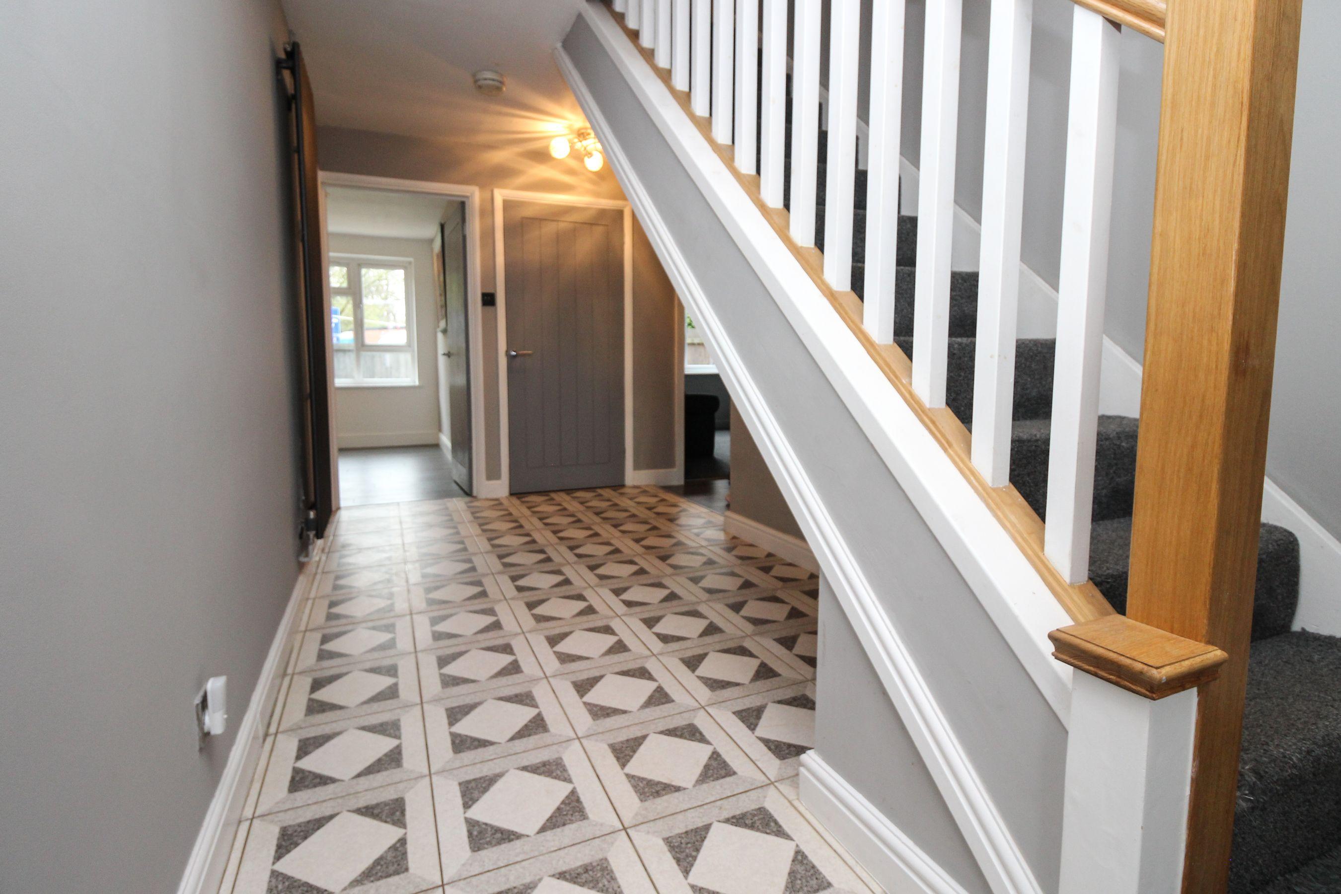 To the rear of the property is a tasteful landscaped garden with grey slabs and lawn area and to the front is a pebble driveway with parking for at least four vehicles.