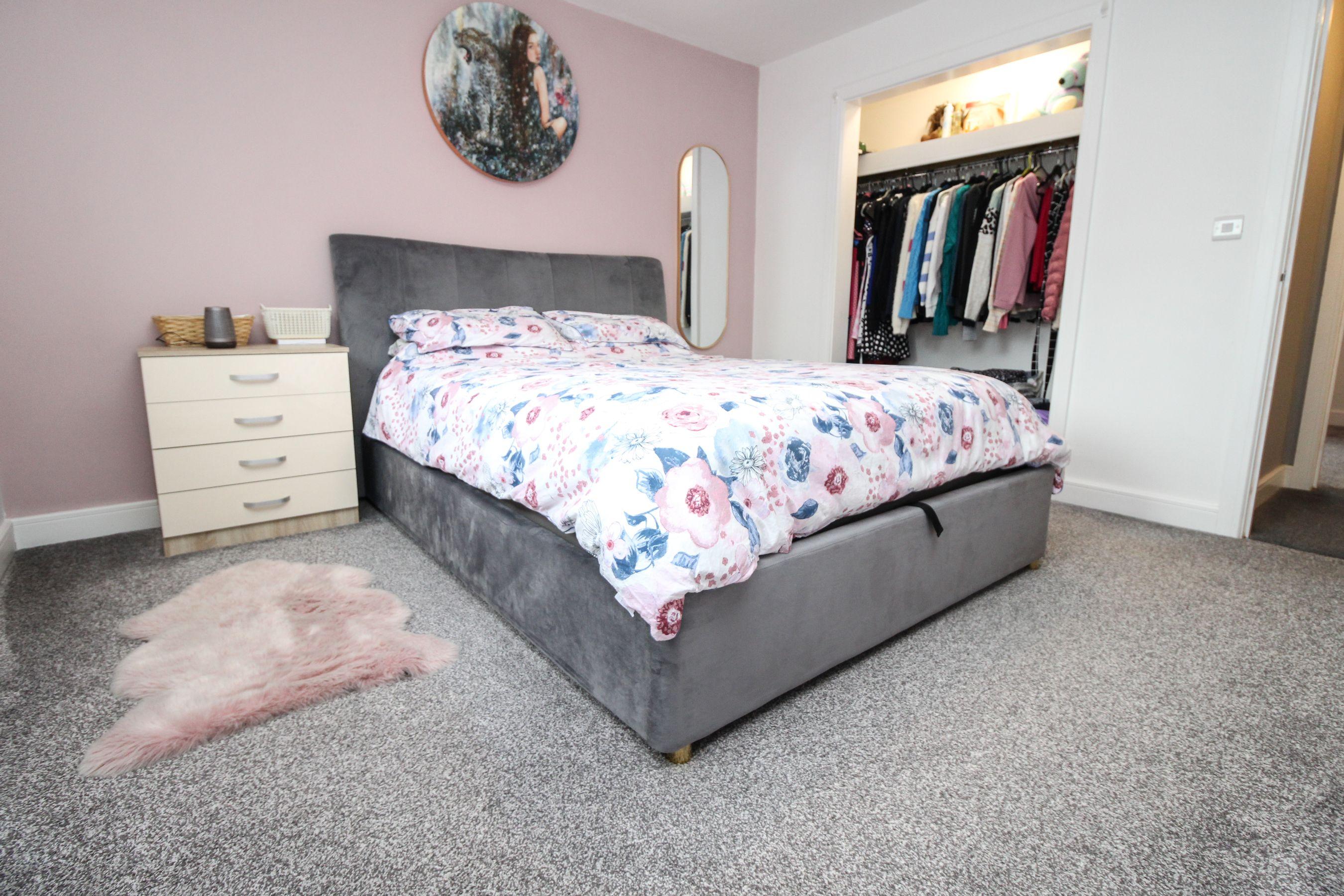 It is a great size and has a lovely built in open plan wardrobe and a large window which allows lots of natural light to flood in to the room.