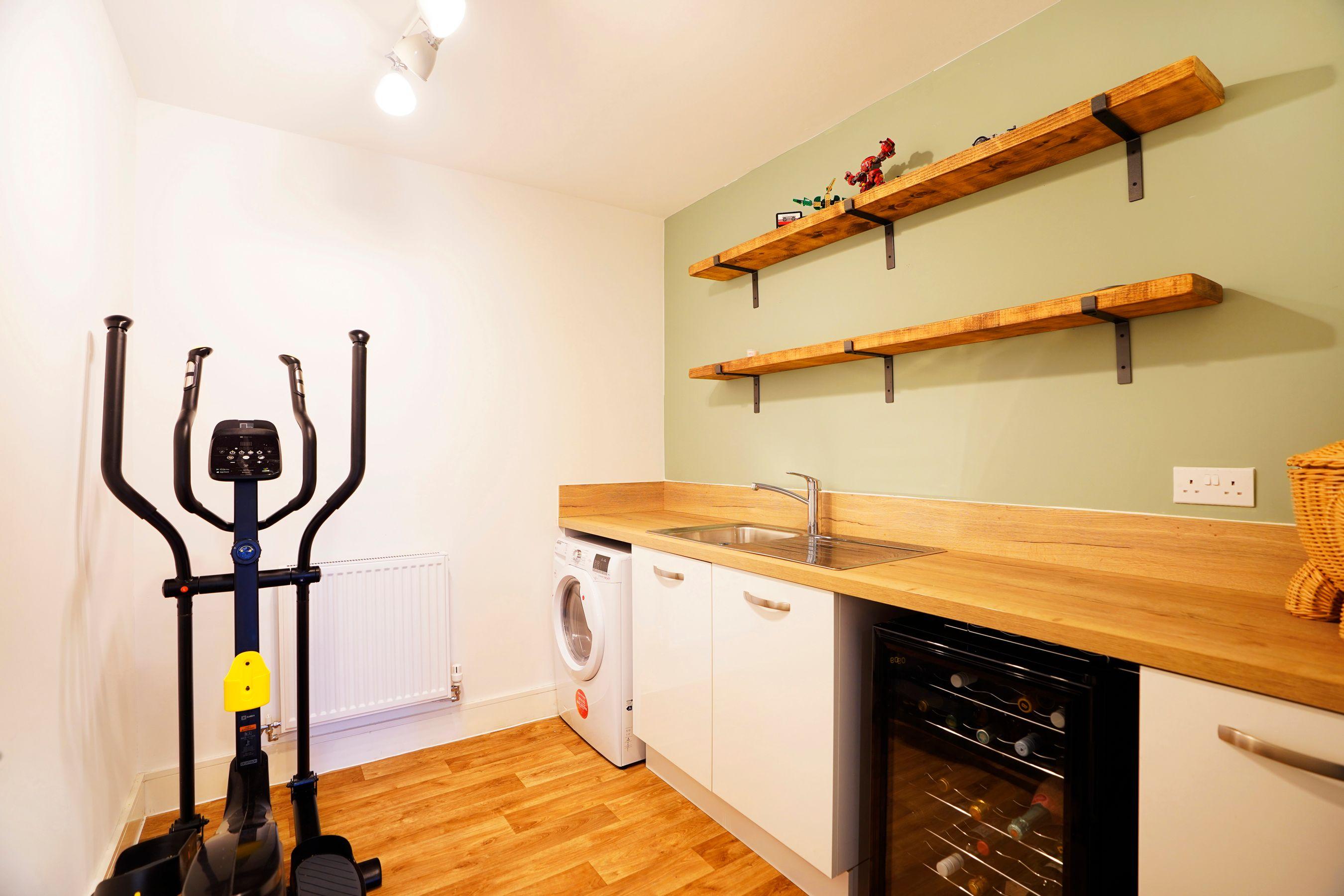 Upon entering this modern family home, you are greeted by a large and spacious entrance hall which provides access to the well-equipped cloakroom, the oversized single garage, an understair storage cupboard, the first floor and a spacious utility room to the rear. The utility room offers a built-in stainless steel sink, space for two appliances, currently occupied by a washing machine and a wine cooler, a wealth of worktop space and storage space and currently doubles as a modest home gym.