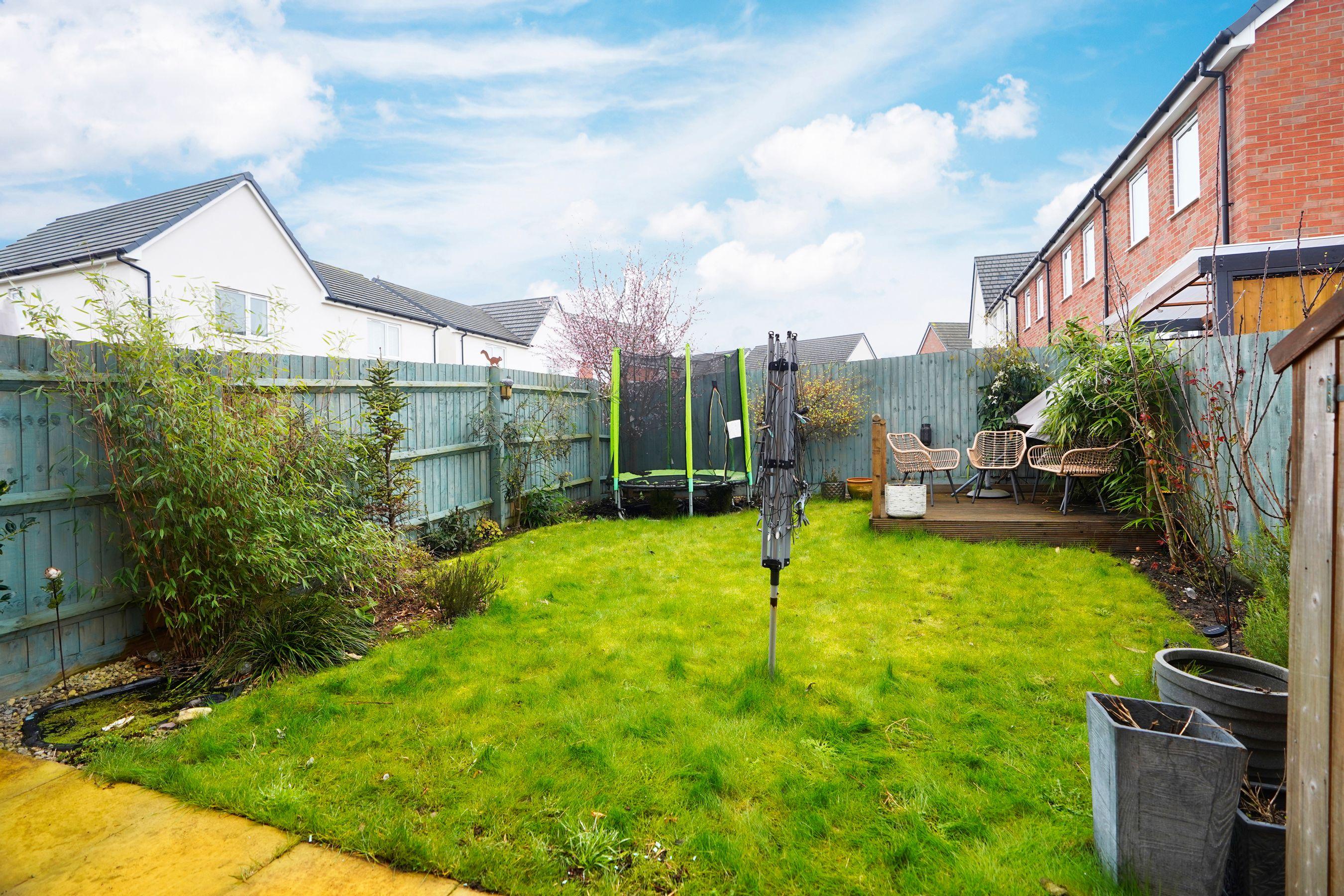 The exterior of the property features a contemporary design with numerous large windows which provide the interior with an abundance of natural light, giving the property a light and welcoming atmosphere. This family home also benefits from a landscaped front garden, a side pathway that provides access to the rear garden and off-street parking for up to two vehicles. The spacious rear garden is a wonderful space for children to play and for barbecues with friends and family in the warm summer months. The generous rear garden offers a large patio, external electrical sockets, an outdoor tap, outdoor lighting, a rotary clothes airer, a modest pond which is surrounded by a small rockery and a large lawned area which is lined by flower beds on both sides. The rear garden benefits from having a garden shed as well as a decked area to the rear of the property which makes a fantastic space to entertain guests and bask in the warm summer sunshine.