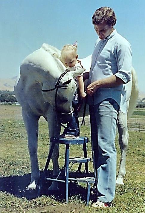 My stories about Mohssen could fill many volumes. This is a picture I call “the little groomer.” It’s Mohssen with my eldest daughter on the stool with me at her side. She was busy brushing his mane and he had turned to nuzzle her as if to say thank you. I loved this horse. He was my best friend growing up.