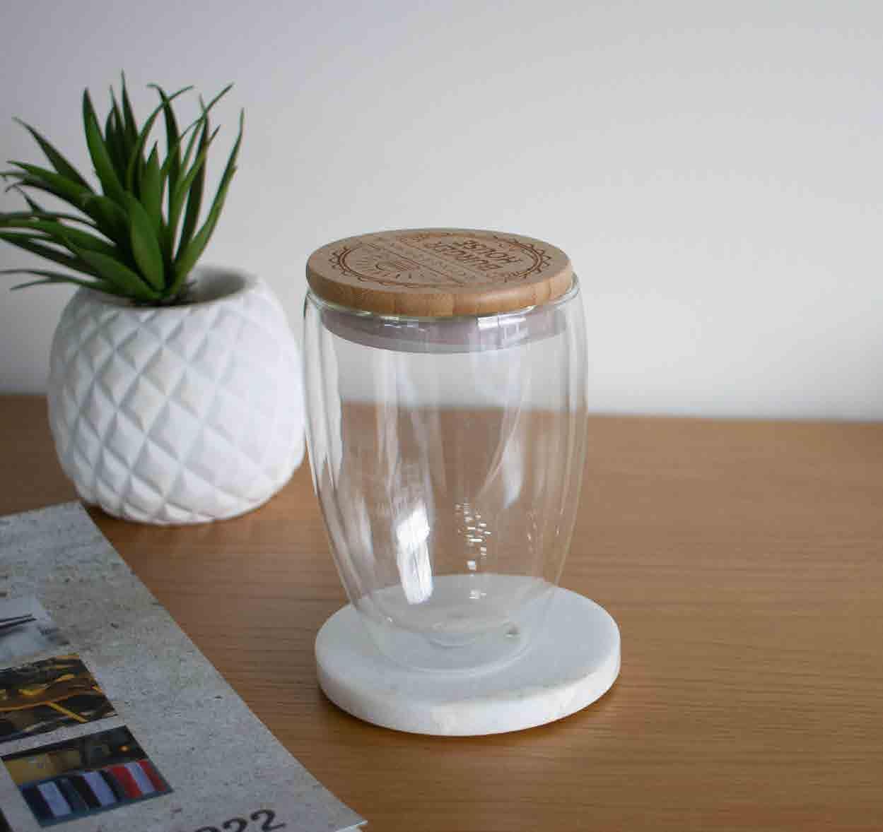 Easton Glass Cup with Bamboo lid 355ml | 4098