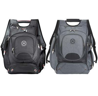Computer backpack features a padded, lined, and dedicated compartment to protect your 17 inch laptop. Side zippered pockets. Mesh water bottle pocket. Airflow™ mesh padded back panel with trolley pass through. Padded and adjustable should straps, cable grab handle.