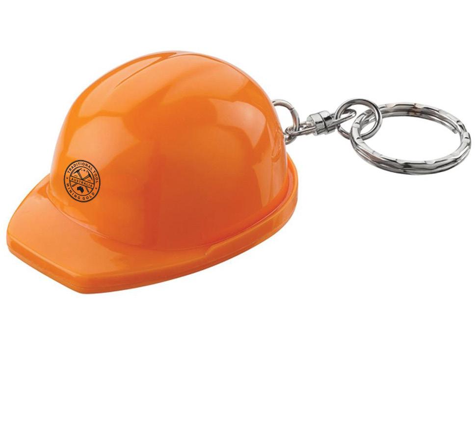 Perfect tradesman’s accessory. Hard hat shaped blue plastic keyring with bottle opener function.