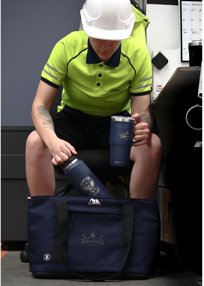 Expandable 50 can capacity, deluxe tote-style cooler bag. The interior features high-density thermal insulation and an Ultra Safe® leakproof lining. Made from REPREVE® RPET, the world’s leading recycled fibre, making it extra eco-friendly. This Cribb Pack includes a premium Arctic Zone drinkware set; 1L double walled stainless steel vacuumed insulated drink bottle and 590ml Eco-Friendly Titan Thermal HP® Mug which fits perfectly in car or truck cup holder.