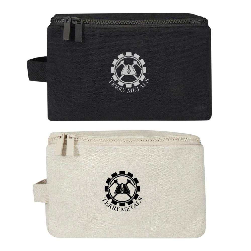 Toiletry organiser made of 500 g/m² recycled cotton and recycled polyester, main spacious compartment with a secure zipper closure and multiple interior slip pockets. Keeps luggage organised.