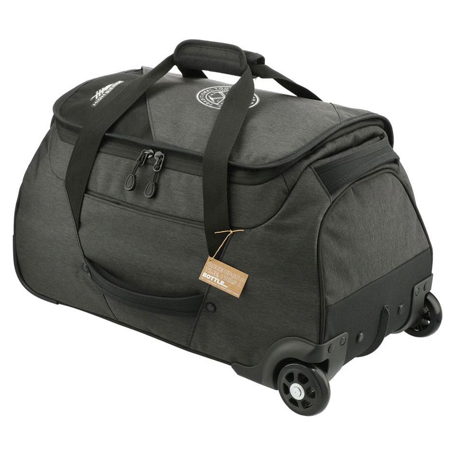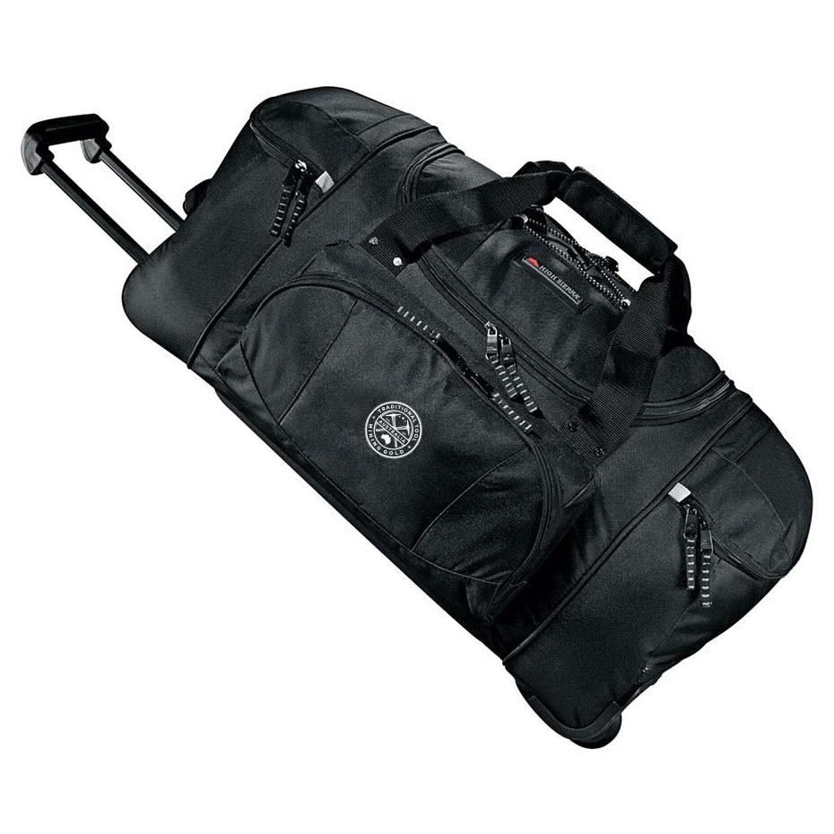 Take your travel to new heights with this sturdy wheeled duffle bag that’s always ready to go. Large main compartment and additional pockets on each side.