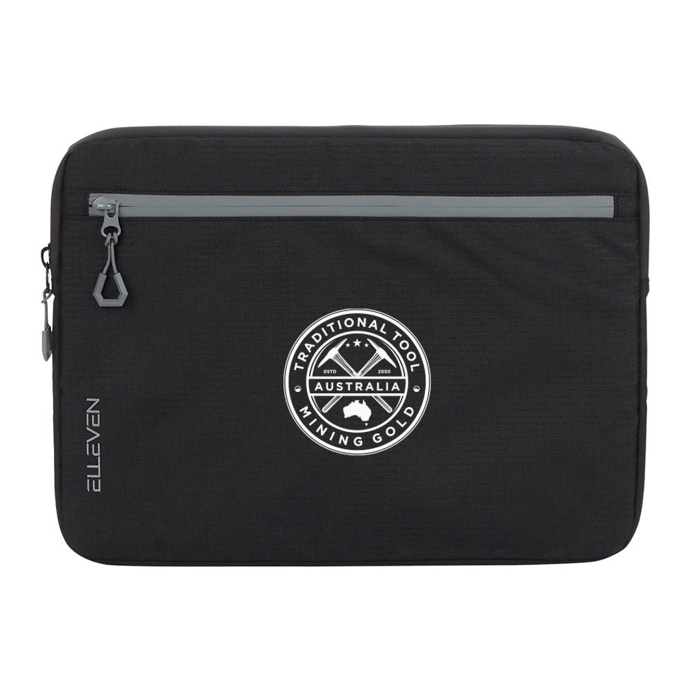 Recycled 16” Laptop Sleeve is the ideal travel companion for your electronics, combining style and sustainability in a slim, modern design. Features both front and back zippered pockets to keep your essentials organized and within reach.