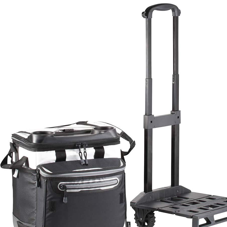 Zippered main compartment holds up to 24 cans